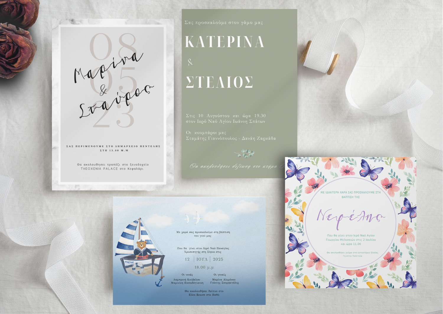 Κάθε υπέροχο event ξεκινάει από εδώ, με την πρώτη επίσημη ματιά στη δική σας εκδήλωση. Ανακαλύψτε προσκλητήρια με χαρακτήρα που δίνουν την υπόσχεση για μια αξέχαστη μέρα.