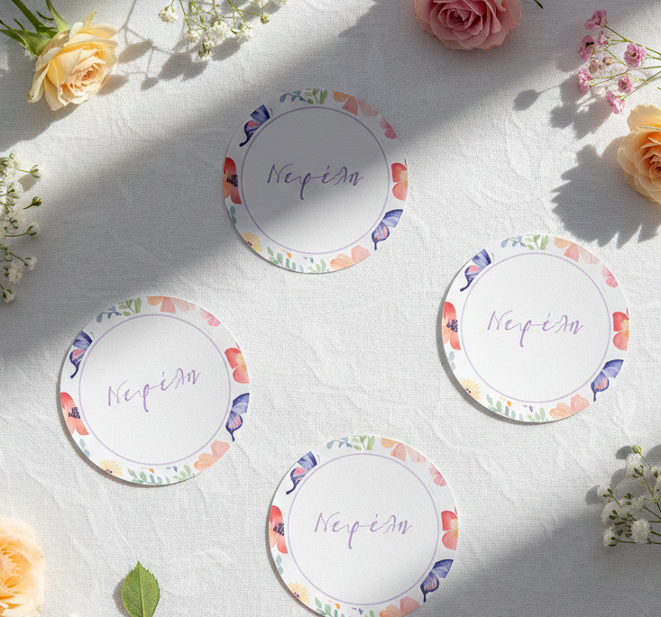 Κυκλικά αυτοκόλλητα για διακόσμηση των δικών σας αντικειμένων (κεράσματα, δωράκια, ποτήρια κ.λ.π)