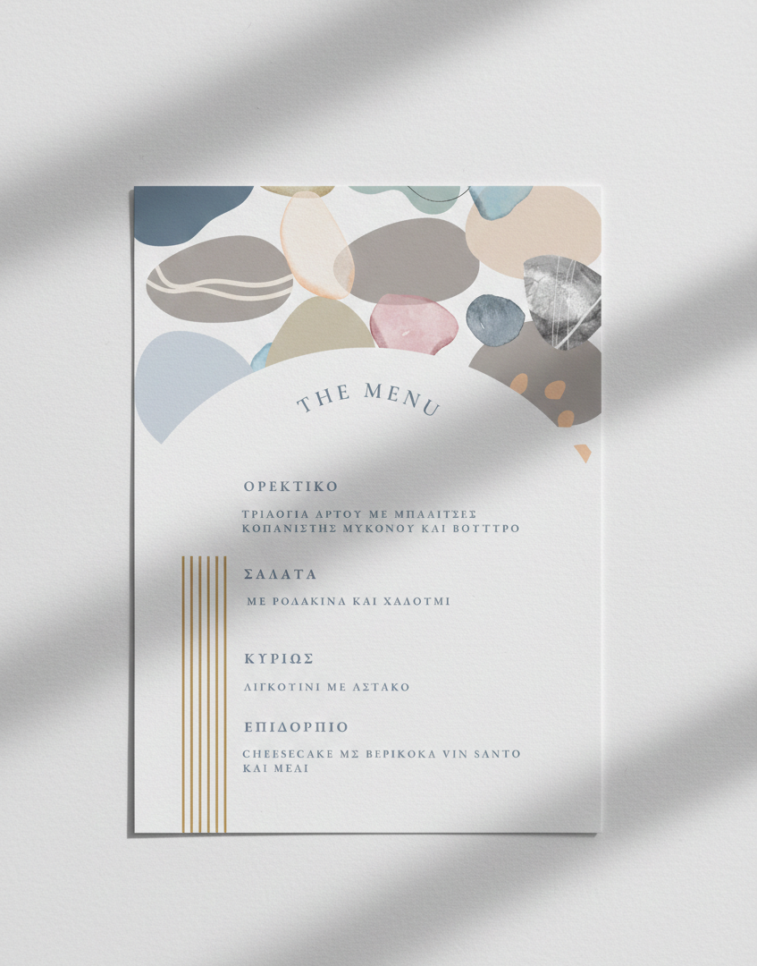 Προσέξτε και την παραμικρή λεπτομέρεια τοποθετώντας κάρτες με το μενού της δεξίωσης σας στα τραπέζια των καλεσμένων σας για ένα πλήρως ολοκληρωμένο event στο θέμα που έχετε επιλέξει.