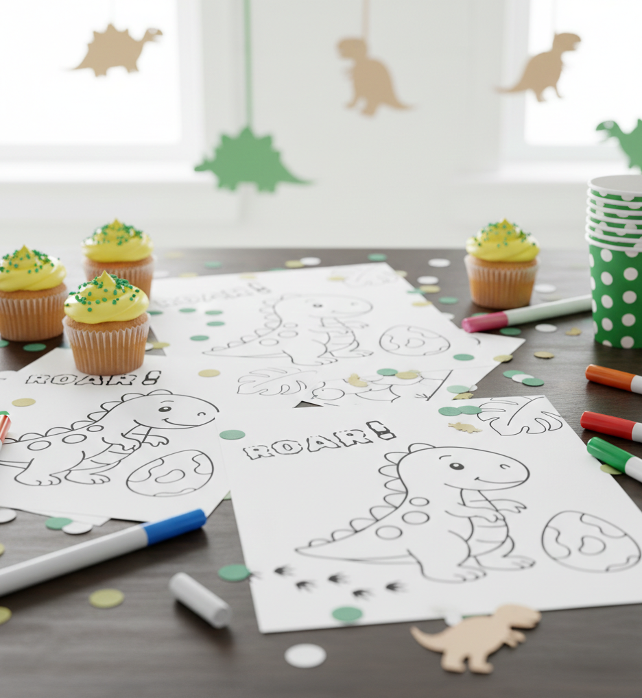 Ψάχνετε μια δραστηριότητα για την απασχόληση των μικρών σας καλεσμένων; Οι ζωγραφοσελίδες της συλλογής «Roar little Dino» θα σας δώσουν τη λύση και θα εντυπωσιάσουν.