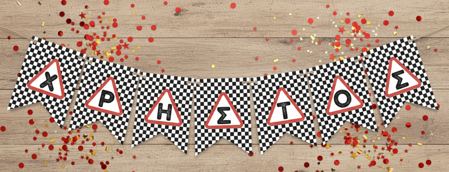 Ζώνη, γκάζι και φύγαμε για ένα αξέχαστο party με διακόσμηση του χώρου σας με τα σημαιάκια της συλλογής «Vroom vroom Car»!